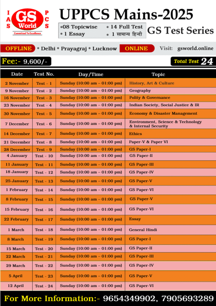 ЁЯПЖ UPPCS Mains Test Series 2025 (24 Tests) тАФ GS World рджреНрд╡рд╛рд░рд╛ рд╕рдлрд▓рддрд╛ рдХреА рдУрд░ рдПрдХ рд╕реБрдирд┐рдпреЛрдЬрд┐рдд рдХрджрдо!
